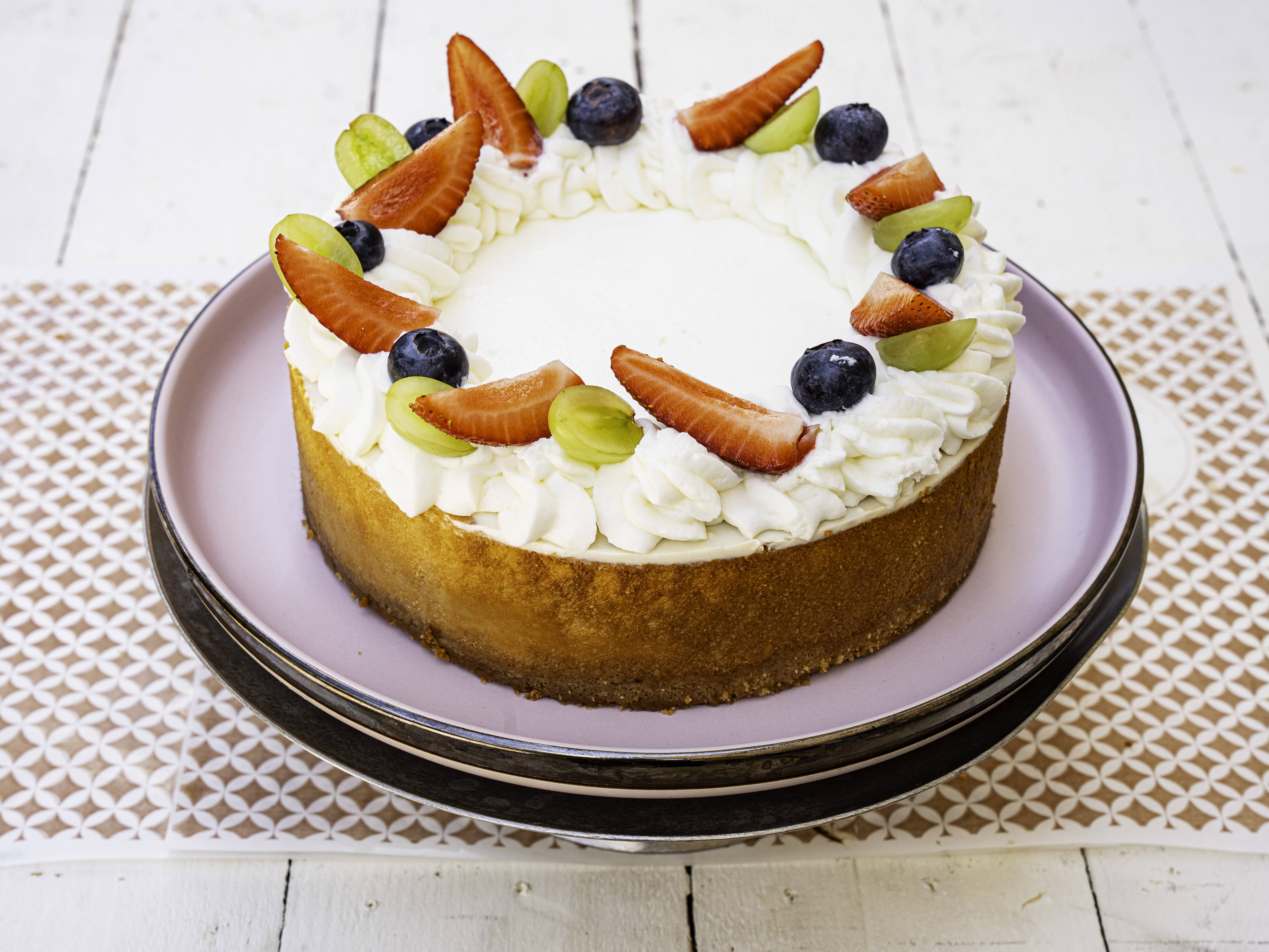 עוגת גבינה עגולה בקישוט פירות טריים