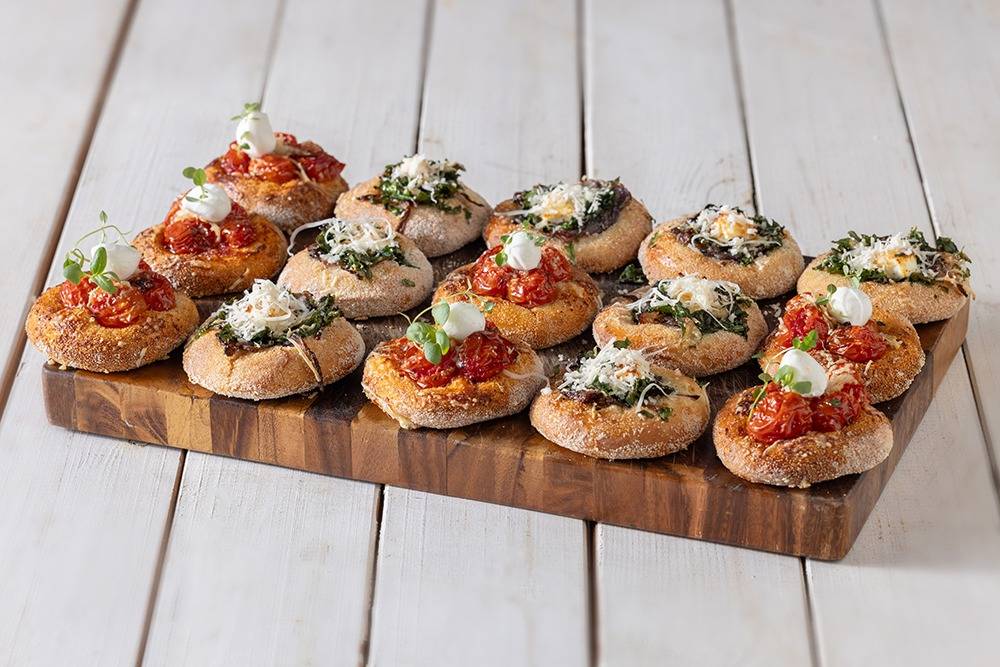 מגש מיני פוקצ'ינות מקמח מלא תרד ושרי 15 יח'