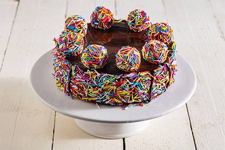 עוגת ילדודס - שכבות עוגת שוקולד ומוס שוקולד בציפוי סוכריות